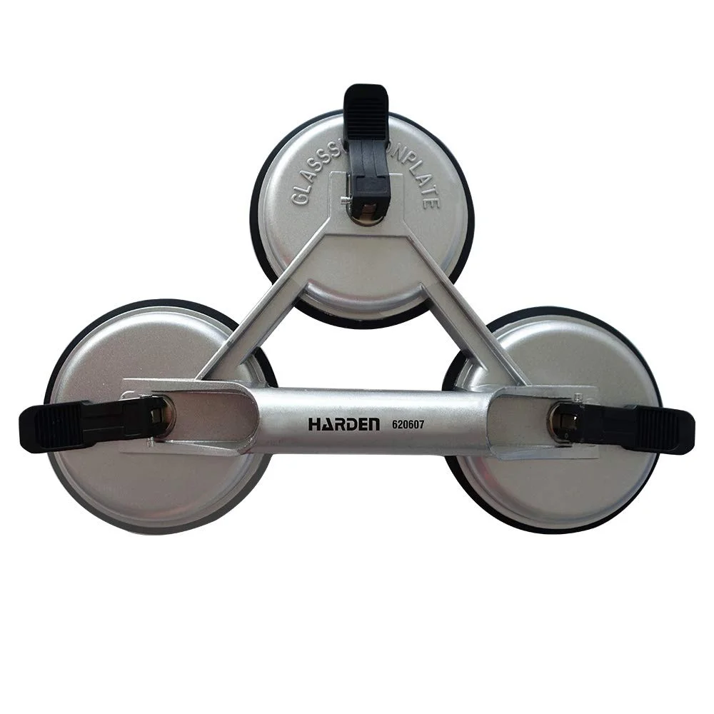 ידית ואקום משולשת של HARDEN, מיועדת להרמה, אחיזה והובלה בטוחה של משטחים חלקים כגון זכוכית, קרמיקה, מתכת חלקה ופלסטיק.