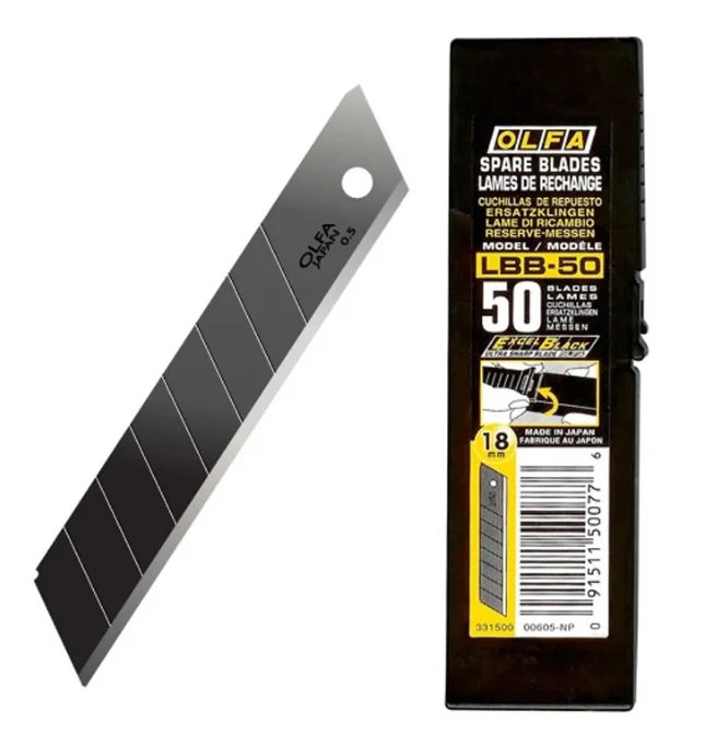 הזמנת להבי חיתוך פרימיום שחורים אולפה – 18 מ"מ (50 יחידות)